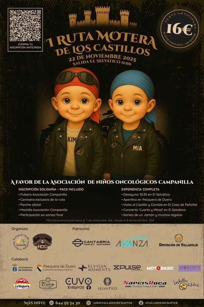 El próximo 22 de noviembre de 2025 se celebrará una Ruta Moto Turística Solidaria organizada por el Valladolid Chapter (HOG) en beneficio de la Asociación de Niños Oncológicos de Valladolid, CAMPANILLA.