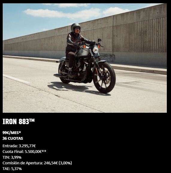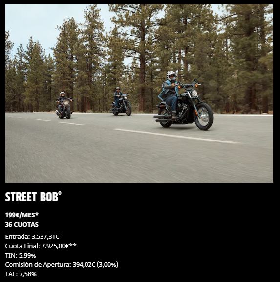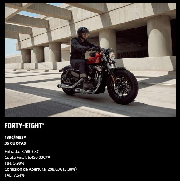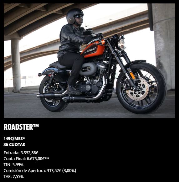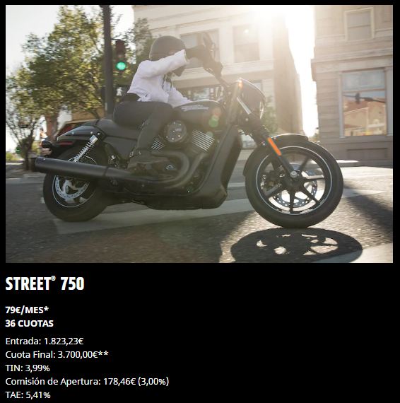 Harley-Davidson Finance es una marca comercial de H-D U.S.A., LLC para ser utilizada por FCA Capital España, EFC, SAU, que es la entidad que ofrece la financiación.