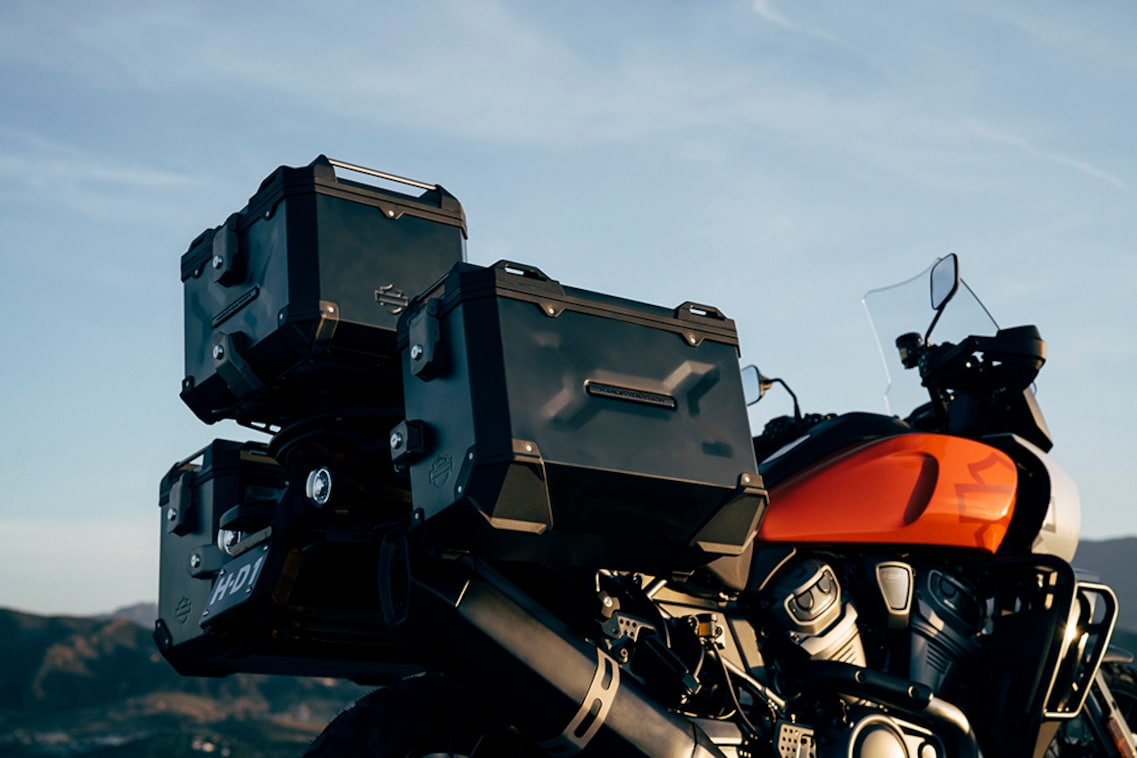 Harley, y polivalente. Ahora, con esta Harley Pan America podrás viajar cómodamente con un acompañante y todo su equipaje gracias al asiento doble y el juego de tres maletas rígidas que incluye o realizar verdaderas aventuras en solitario aprovechándose de su sofisticada suspensión y sus neumáticos de campo.