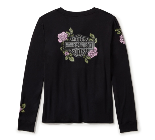 Camiseta Mujer Harley-Davidson® Woman Rose & Thorn Bling Long Sleeve Top – Negro, 96434-25VW